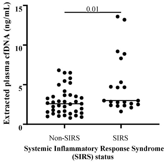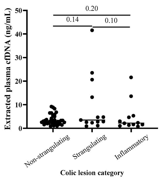 Chicago/Turabian StyleBayless, Rosemary L., Bethanie L. Cooper, and M. Katie Sheats. 2024. "Extracted Plasma Cell-Free DNA Concentrations Are Elevated in Colic Patients with Systemic Inflammation" Veterinary Sciences 11, no. 9: 427. https://doi.org/10.3390/vetsci11090427