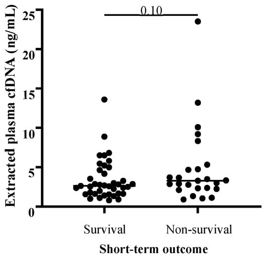 - Avriel, A.; Wiessman, M.P.; Almog, Y.; Perl, Y.; Novack, V.; Galante, O.; Klein, M.; Pencina, M.J.; Douvdevani, A. Admission Cell Free DNA Levels Predict 28-Day Mortality in Patients with Severe Sepsis in Intensive Care. PLoS ONE 2014, 9, e100514. [Google Scholar] [CrossRef] [PubMed]