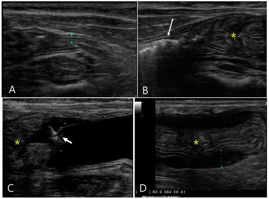 - Maconi, G.; Radice, E.; Bareggi, E.; Porro, G.B. Hydrosonography of the Gastrointestinal Tract. Am. J. Roentgenol. 2009, 193, 700–708. [Google Scholar] [CrossRef] [PubMed]