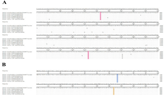 | Primer | Sequences (5′-3′) | Target Gene | Wild-Type Strain Size (bp) | Vaccine Strains Size (bp) |