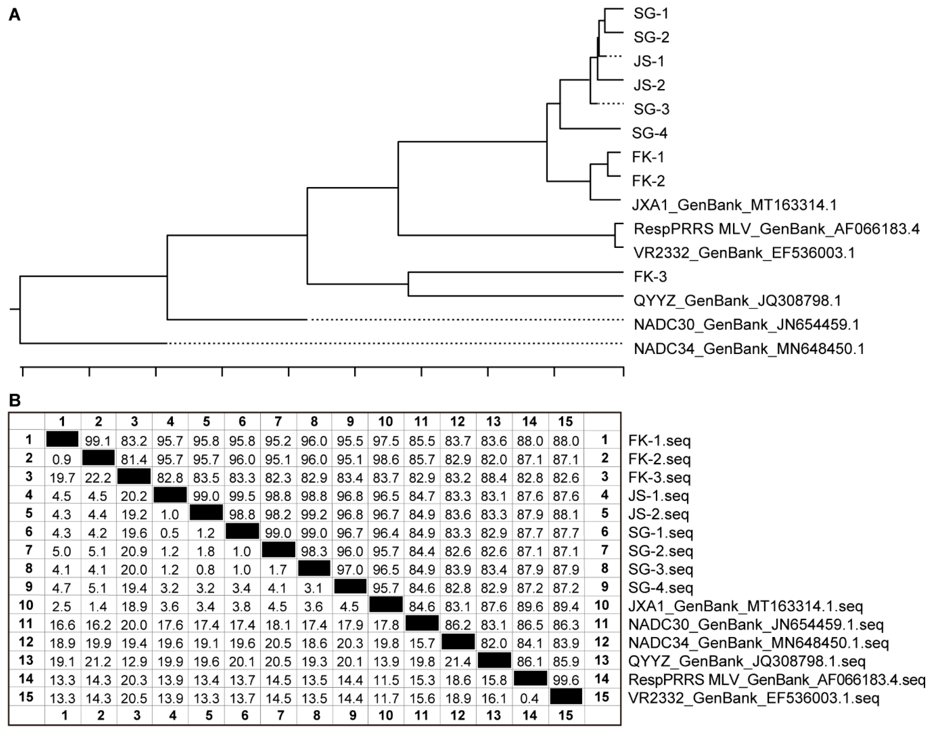 3.2. PRRSV Status Evaluation and ORF 5 Sequencing Analysis at SG and FK