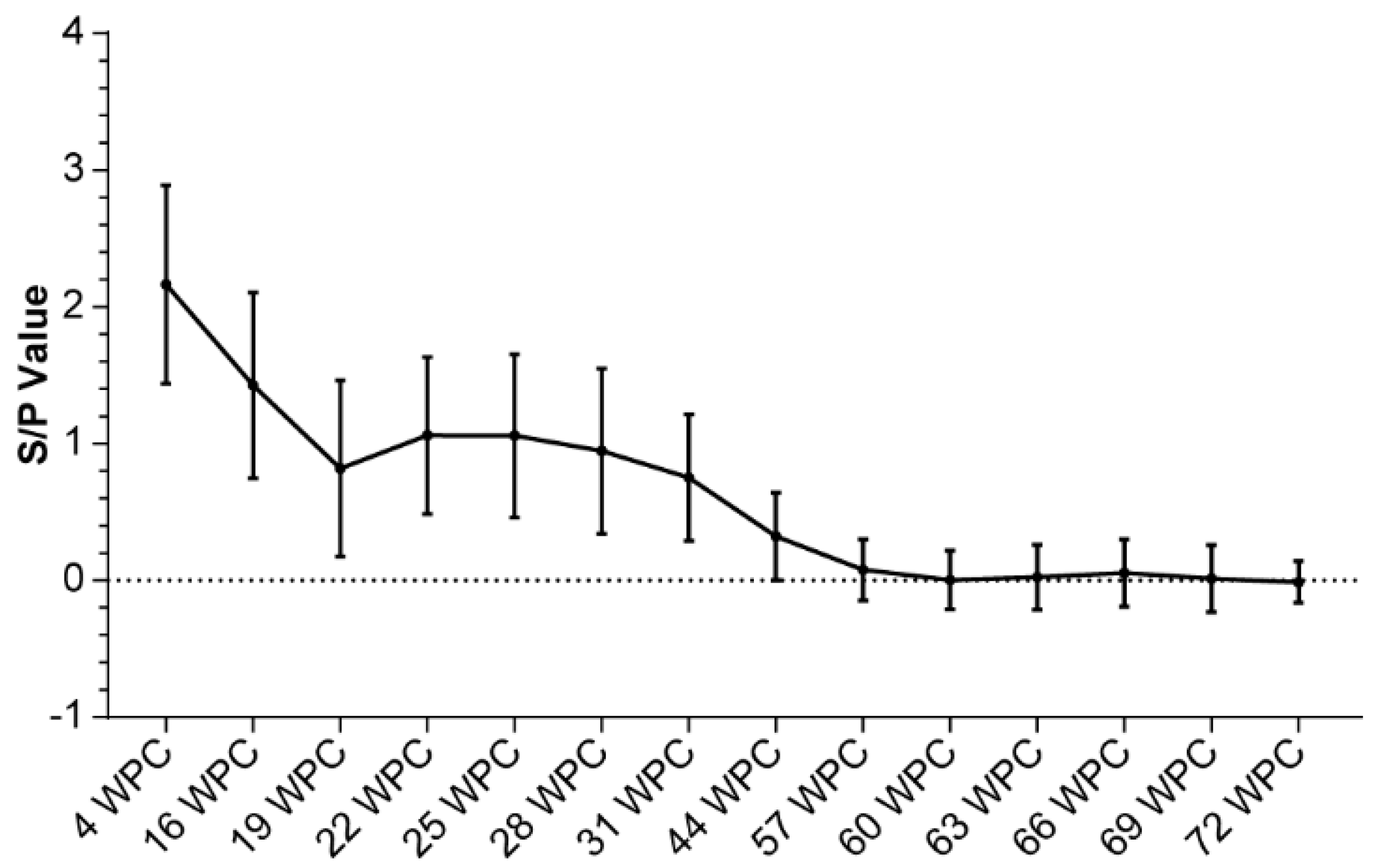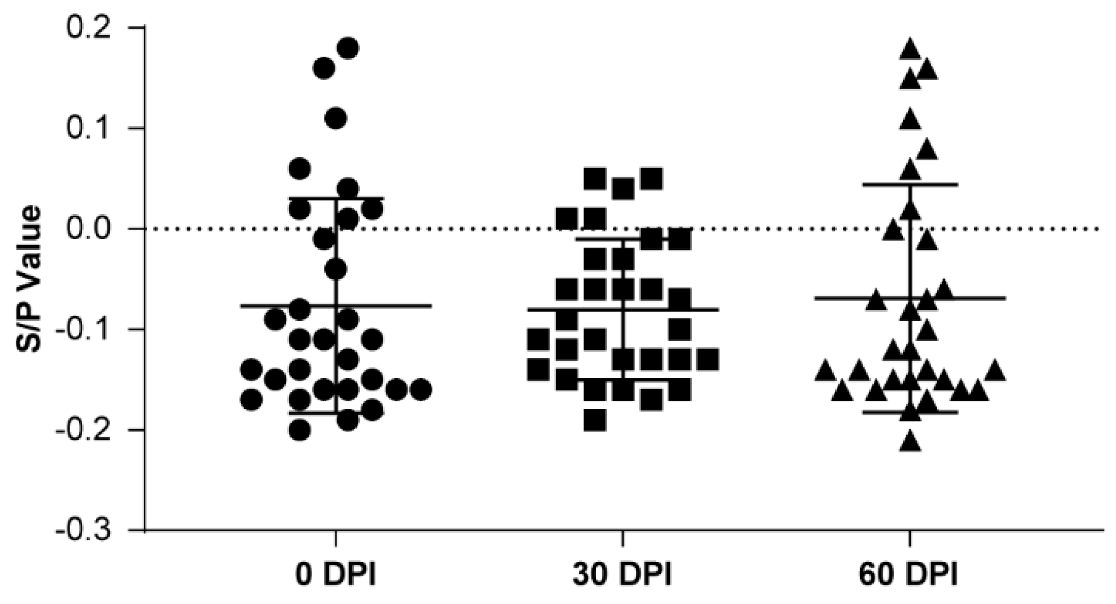 | Serum | ≥30 | ELISA | 4 weeks after challenge | Assessing infection rate |