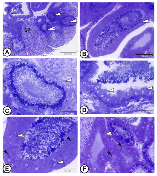 APA StyleMokhtar, D. M., Zaccone, G., Aragona, M., Guerrera, M. C., Alonizan, R., & Hussein, M. T. (2025). Unraveling Spermatogenesis in Molly Fish (Poecilia sphenops): An Integrative Study of Testicular Ultrastructure and Immunohistochemistry. Veterinary Sciences, 12(10), 930. https://doi.org/10.3390/vetsci12100930