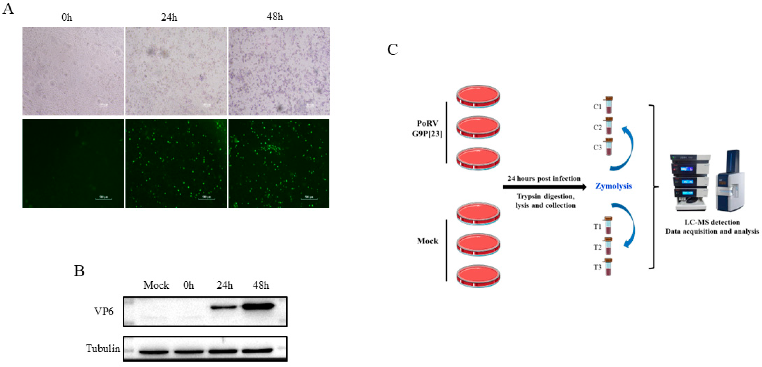 Zhang, Z.; Li, Y.; Zhou, X.; Li, D.; Li, M.; Wang, X.; Ren, Q.; Li, X. 4D-DIA Proteomic Analysis of IPEC-J2 Cells Infected with Porcine Group A Rotavirus G9P[23] Strain. Vet. Sci. 2025, 12, 946. https://doi.org/10.3390/vetsci12100946