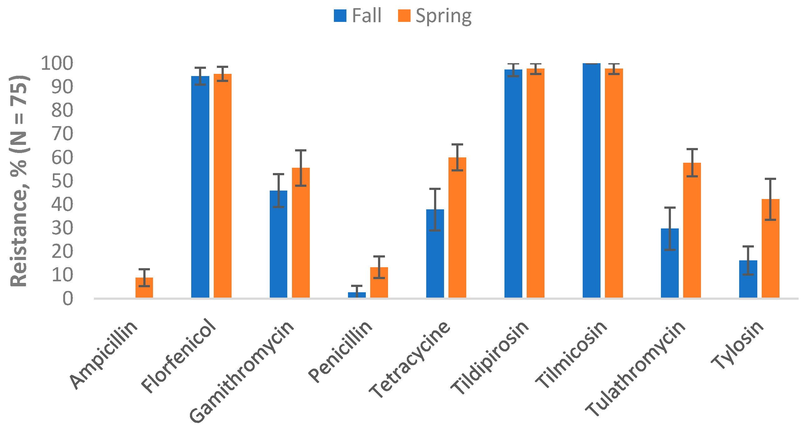 25]. Unexpectedly, the same study detected higher rates of AMR to drugs approved for use only in non-lactating cattle, commonly youngstock, such as macrolides, florfenicol, and tiamulin. A large proportion of the study cows were healthy, and none had a record of treatments using macrolides, florfenicol, or tiamulin. However, study dairies used these drugs to treat the young stock, except for one dairy that raised the calves off-site from birth until just before their first calving [