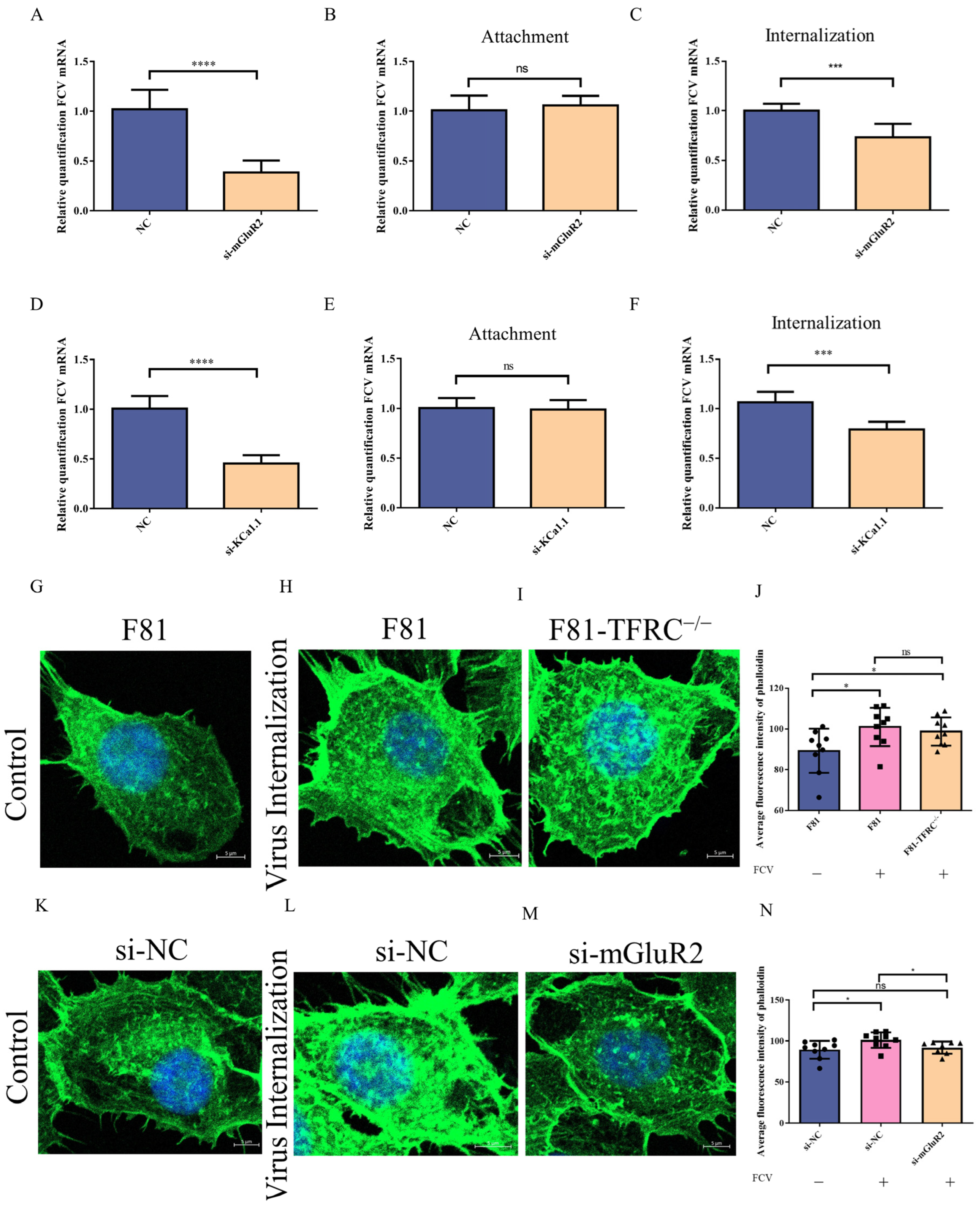 3.2. mGluR2 and KCa1.1 Modulate the Replication of FCV by Regulating Its Internalization into Host Cells
