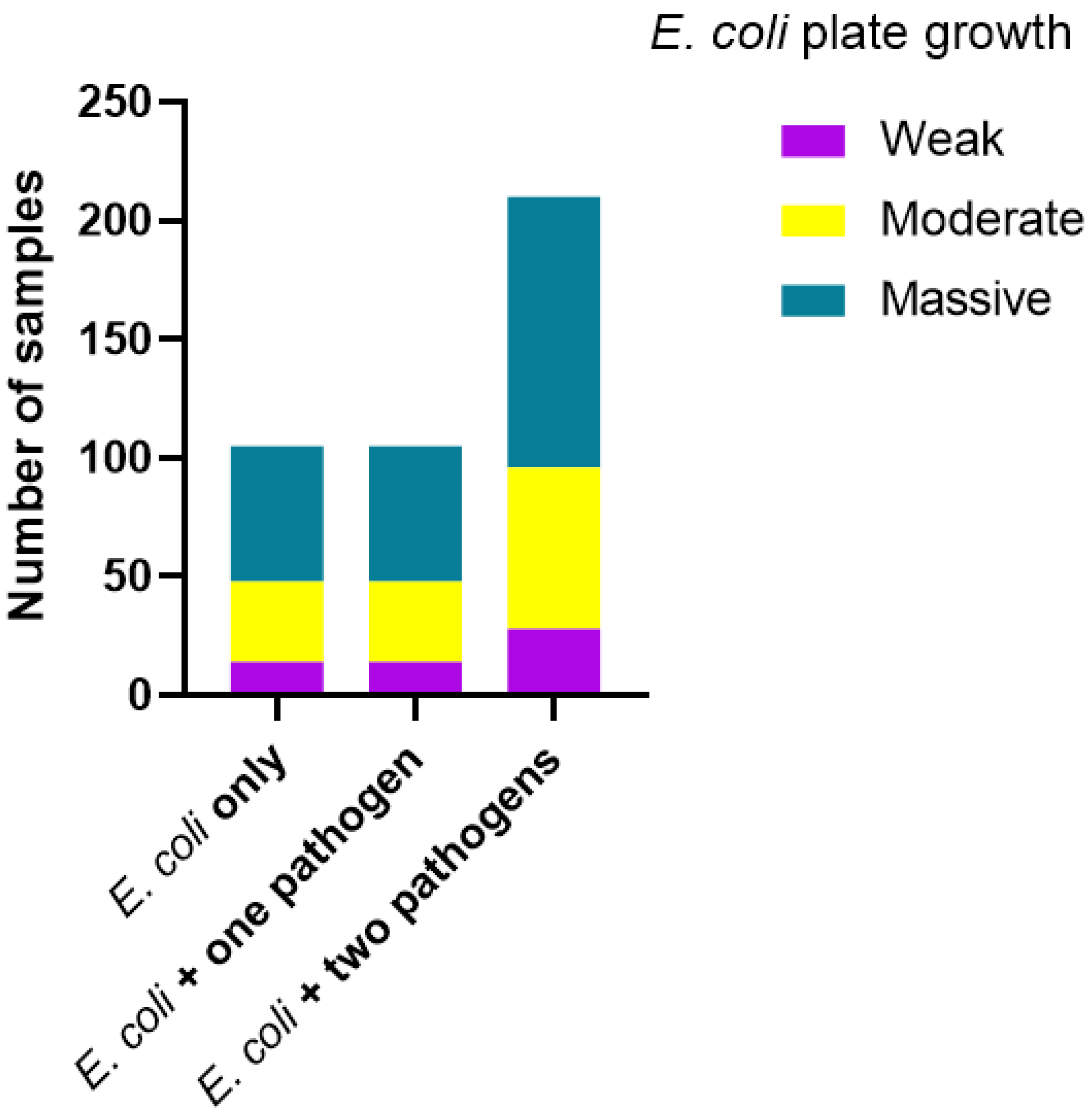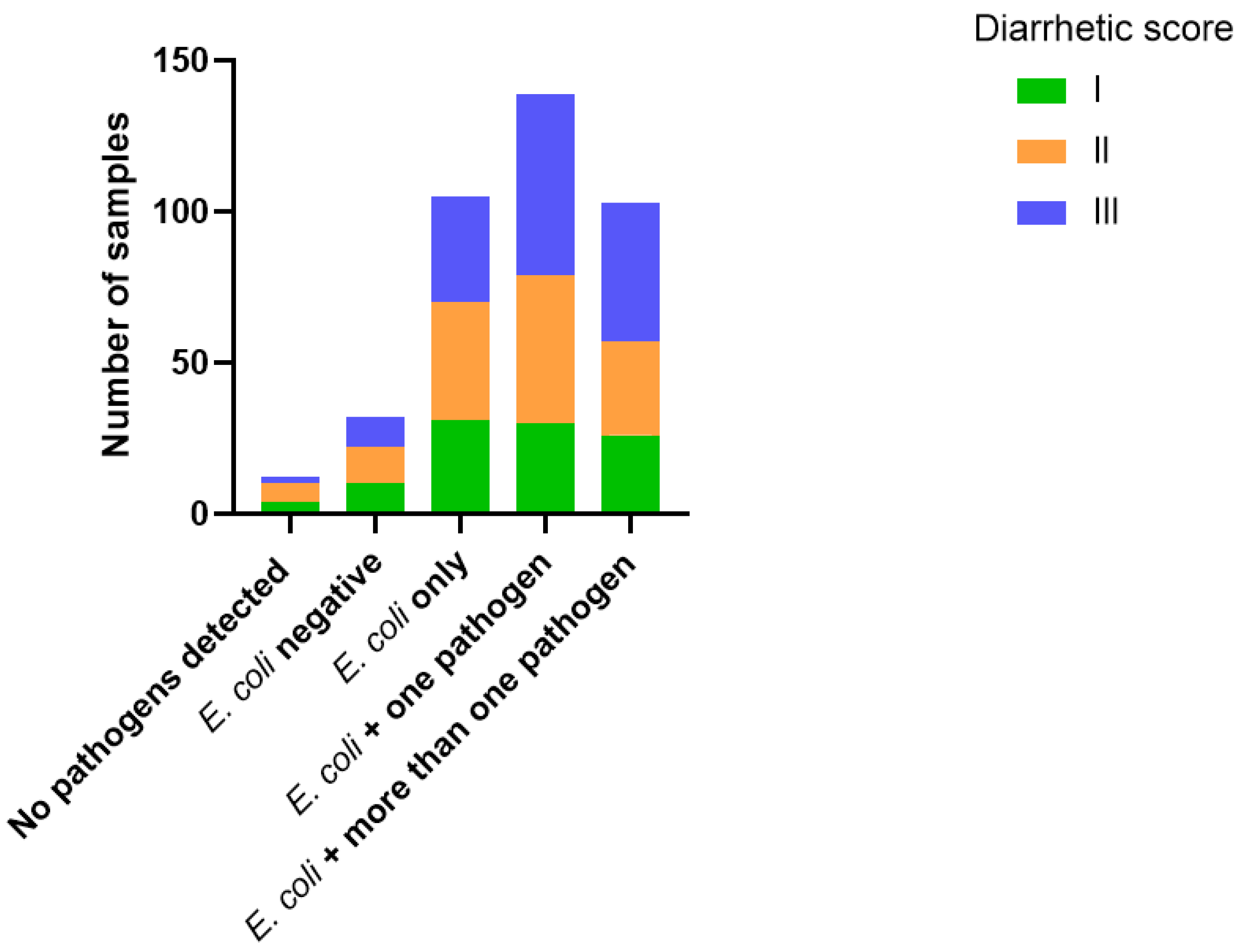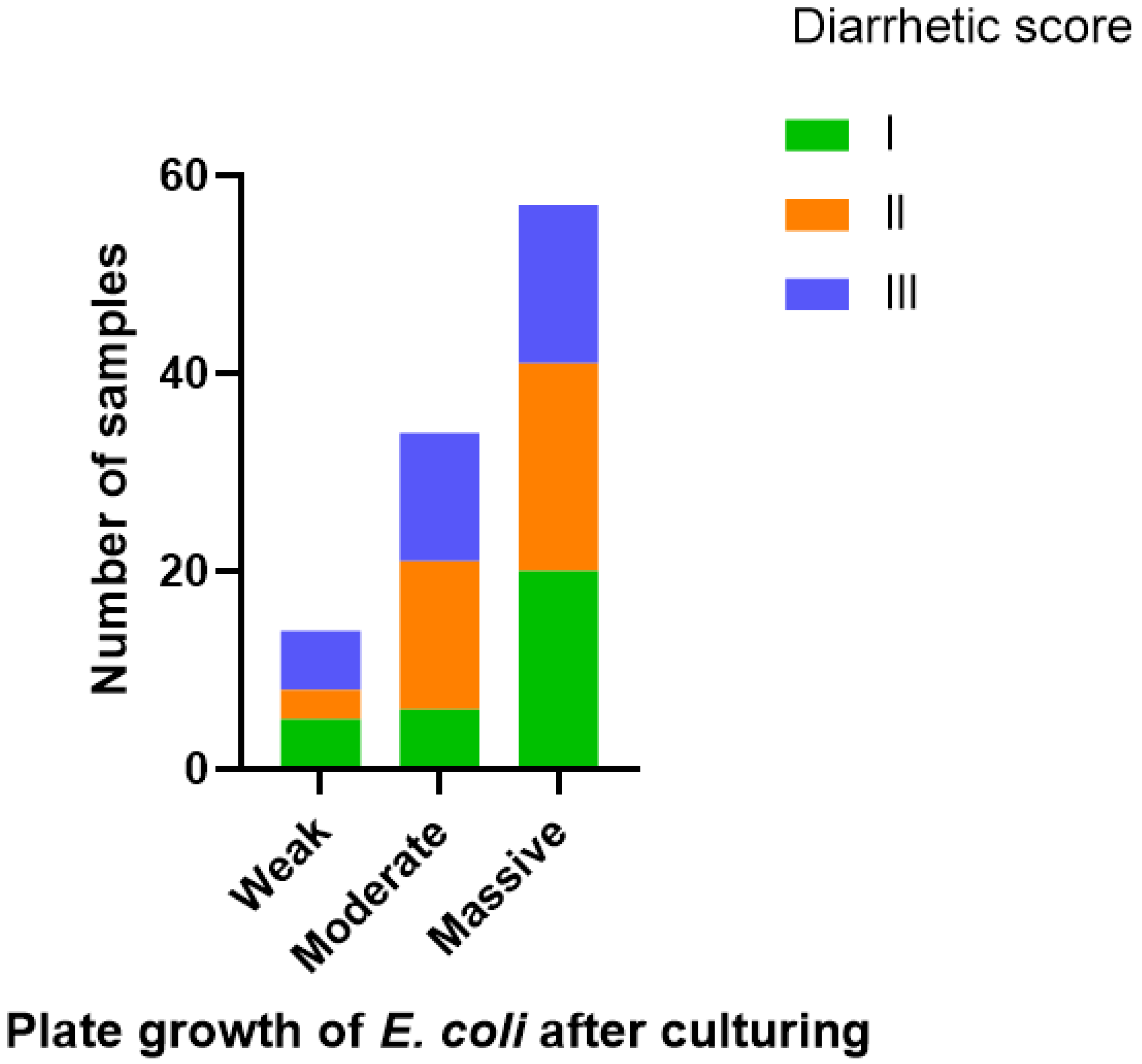 3.1. E. coli-Positive Faecal Samples and Diarrhetic Score