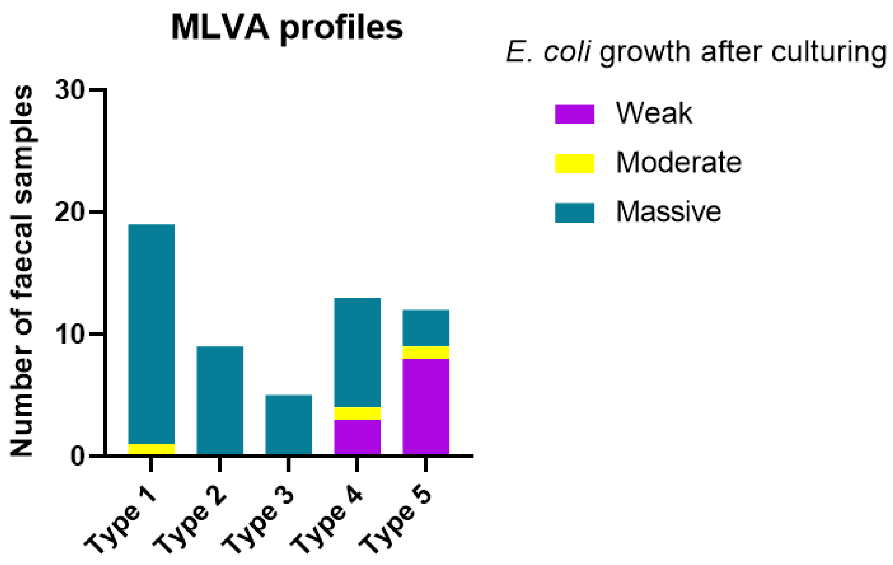 3.2. E. coli MLVA Typing and Diversity