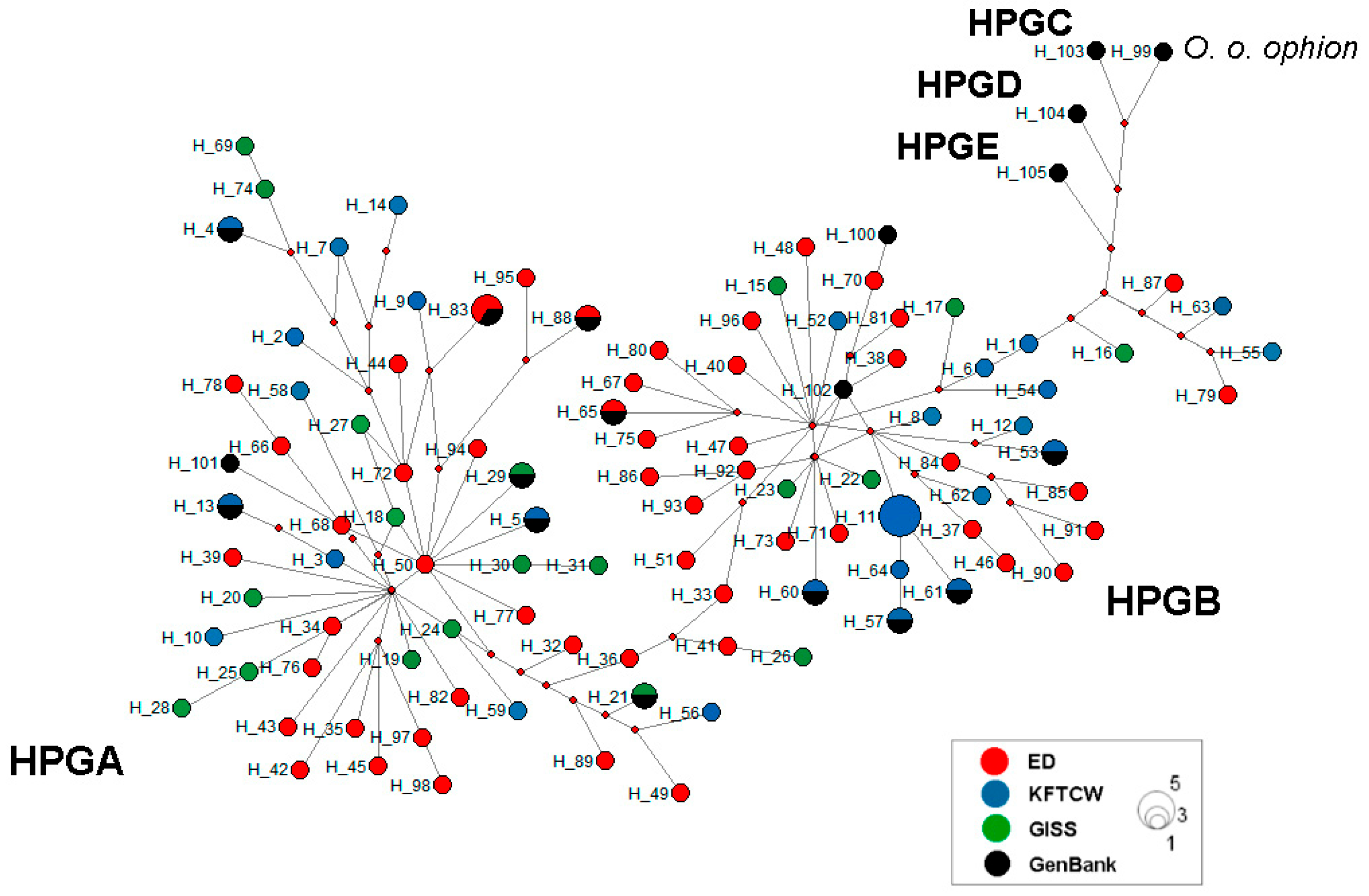 30. Excoffier, L.; Laval, G.; Schneider, S. Arlequin (version 3.1): An integrated software package for population genetics data analysis. Evol. Bioinform. Online 2005, 1, 47–50. [Google Scholar] [CrossRef]