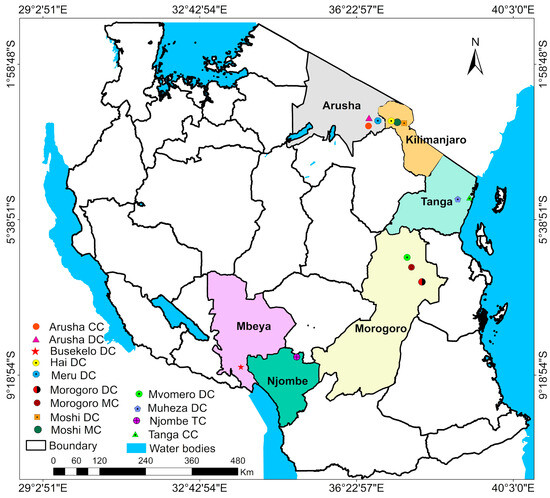 - Wassena, F.J.; Mangesho, W.E.; Chawala, A.; Laswai, G.H.; Bwire, J.M.; Kimambo, A.E.; Lukuyu, B.; Sikumba, G.; Maass, B.L. Effects of Season and Location on Cattle Milk Produced and Producer Milk Prices in Selected Villages of Tanga and Morogoro Regions, Tanzania. Livest. Res. Rural Dev. 2015, 27. [Google Scholar]