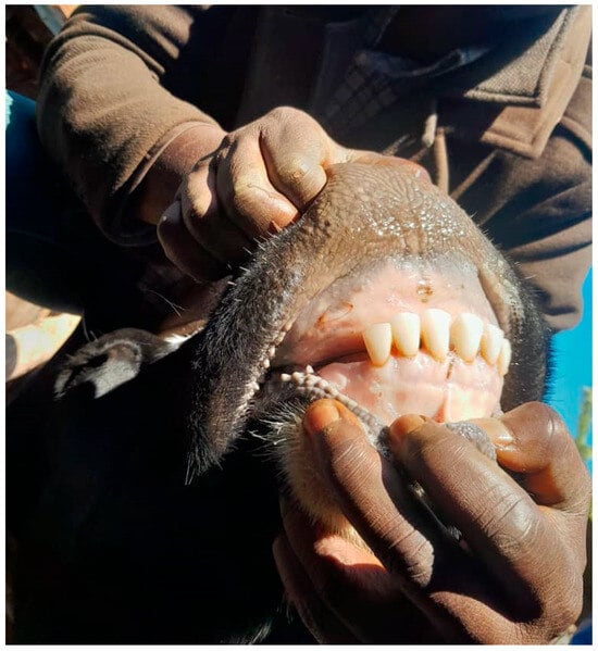 In response to the question, “Have you ever managed infertility using traditional methods?” only eighteen farmers across the regions reported using traditional methods to address infertility. However, of those 18, 13 were in Njombe. Repeat breeding, RFM, and dystocia were among the conditions reported to be traditionally managed by smallholder dairy cattle farmers. One example of such is the extraction of the corner incisor teeth (Figure 5) as a “treatment” of a repeat breeder cow/heifer, which was practised by 13 farmers from the Njombe region. Other reported treatments included using natural herbs and receiving assistance from traditional healers.