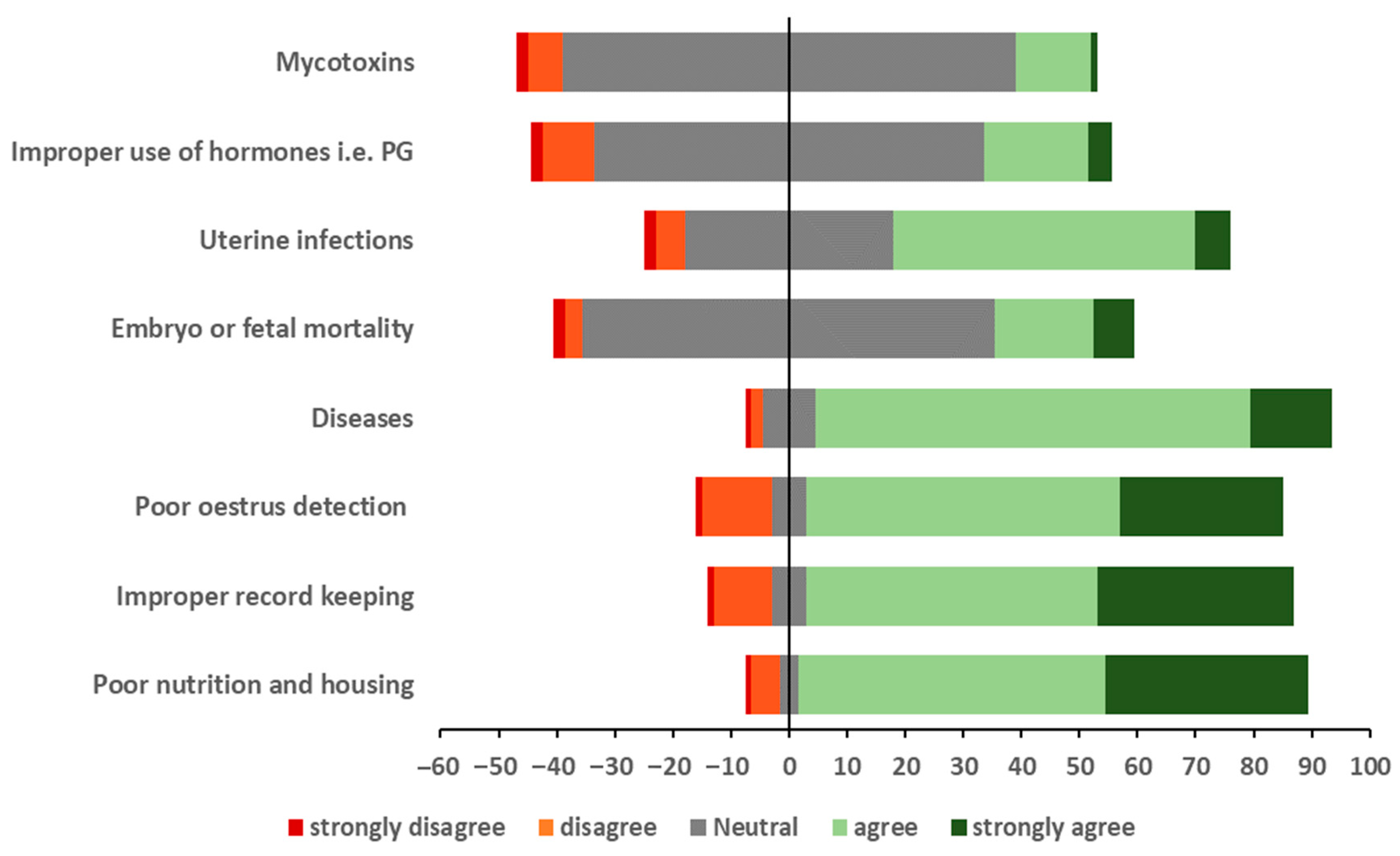 3.2. Farmers’ Perceptions of the Causes of Cattle Infertility