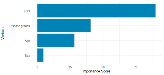 Variable importance was assessed from the weighted Random Forest model using impurity-based metrics. Disease-related predictors were grouped to improve interpretability (Figure 4), while the complete list of variable contributions is presented in Supplementary Figure S1.