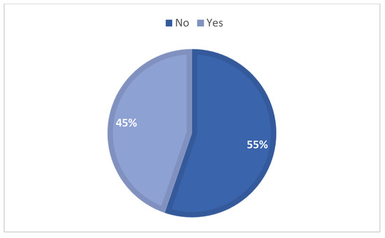 The majority of participants (55.0%, n = 232) reported not feeling capable of identifying suspicious skin lesions. However, 45.0% (n = 188) believed they could recognize such signs (Figure 5). The ability to identify suspicious lesions was associated with age (p < 0.001), number of pets (p = 0.002), and duration of ownership (p = 0.001), being more common among younger, multiple-pet, and long-term owners.