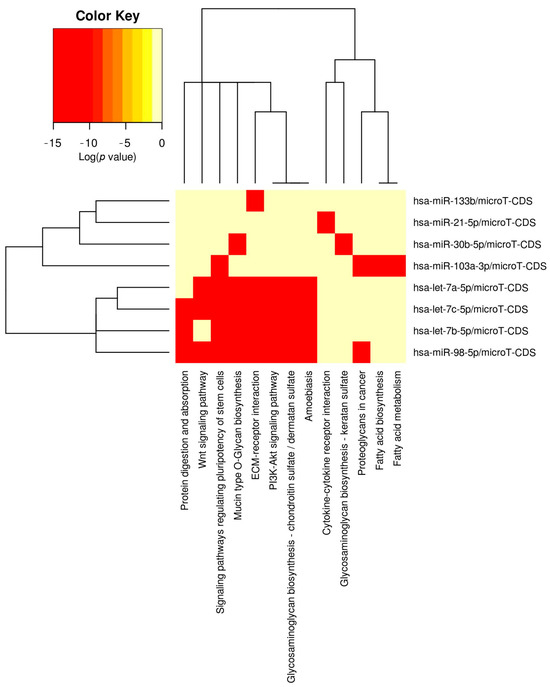 - Vlachos, I.S.; Zagganas, K.; Paraskevopoulou, M.D.; Georgakilas, G.; Karagkouni, D.; Vergoulis, T.; Dalamagas, T.; Hatzigeorgiou, A.G. DIANA-miRPath v3.0: Deciphering microRNA Function with Experimental Support. Nucleic Acids Res. 2015, 43, W460–W466. [Google Scholar] [CrossRef]