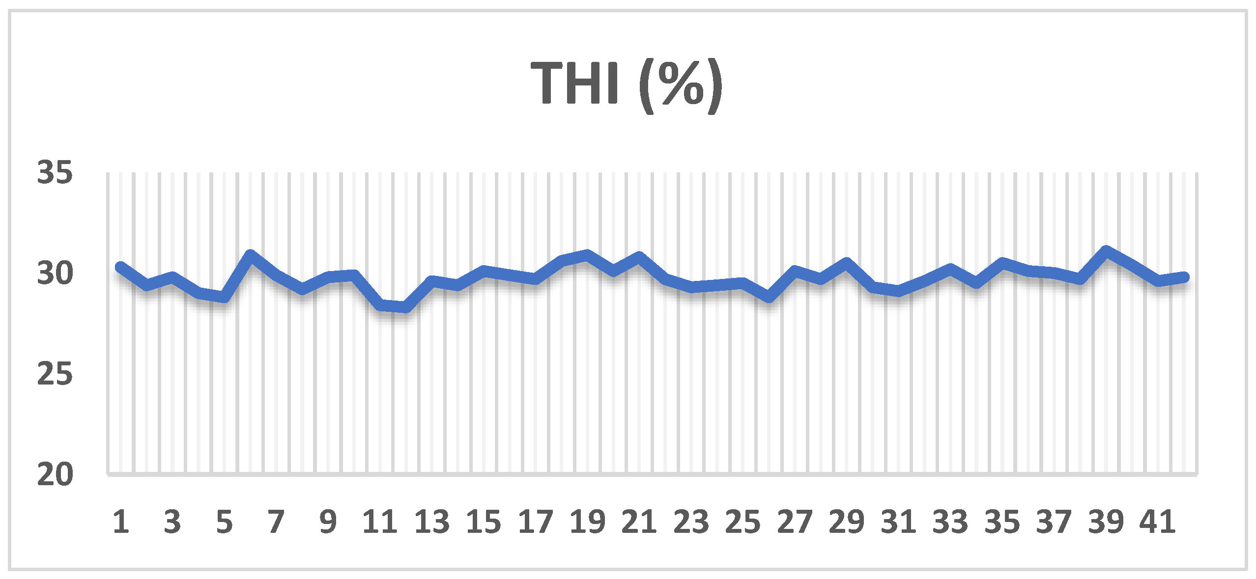 B. subtilis and nano-encapsulated cumin oil could be an effective additive to alleviate the harmful effects of heat stress in rabbits. In particular, the results of the current study showed that rabbits were exposed to heat stress through increased THI values, accompanied by increased respiratory and pulse rates. Notably, both RR and PR increased significantly during periods of high THI, reflecting the rabbits’ thermal sensitivity to high ambient temperature and humidity, which puts them at risk for heat stress. It is interesting to note that the addition of