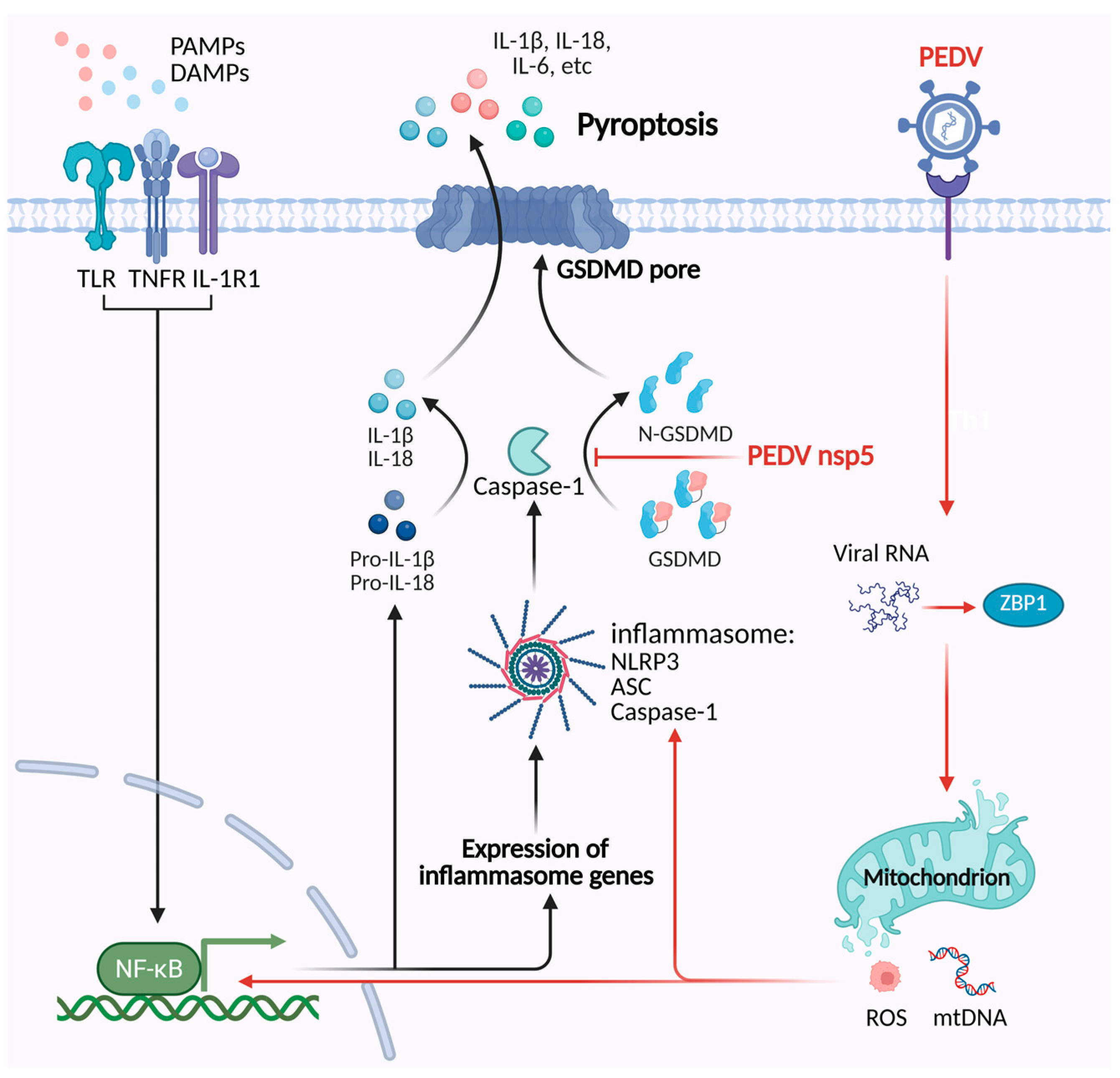4.2. Pyroptosis in PEDV Infection