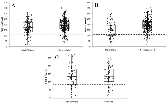 - Bojic, S.; Kotur-Stevuljevic, J.; Kalezic, N.; Jelic-Ivanovic, Z.; Stefanovic, A.; Palibrk, I.; Memon, L.; Kalaba, Z.; Stojanovic, M.; Simic-Ogrizovic, S. Low paraoxonase 1 activity predicts mortality in surgical patients with sepsis. Dis. Markers 2014, 2014, 427378. [Google Scholar] [CrossRef]