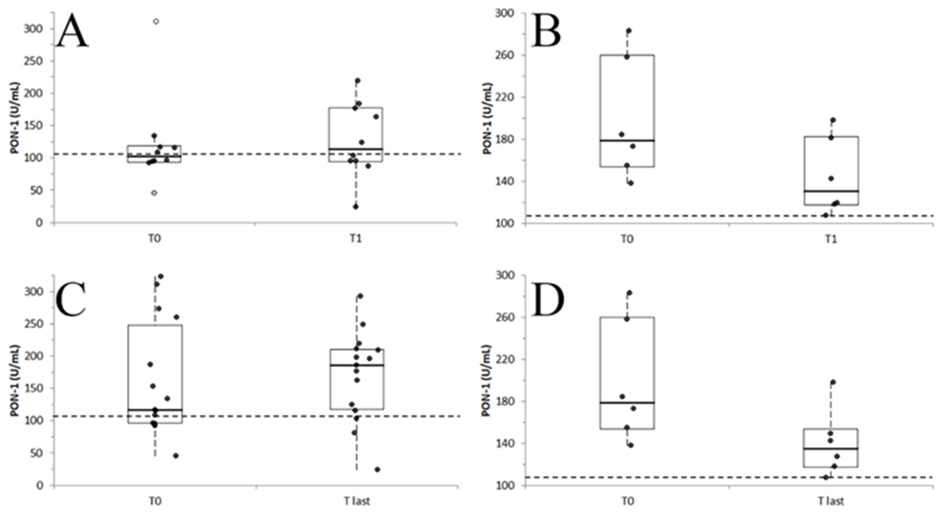 - Karsen, H.; Binici, I.; Sunnetcioglu, M.; Baran, A.I.; Ceylan, M.R.; Selek, S.; Celik, H. Association of paraoxonase activity and atherosclerosis in patients with chronic hepatitis B. Afr. Health Sci. 2012, 12, 114–118. [Google Scholar] [CrossRef] [PubMed]