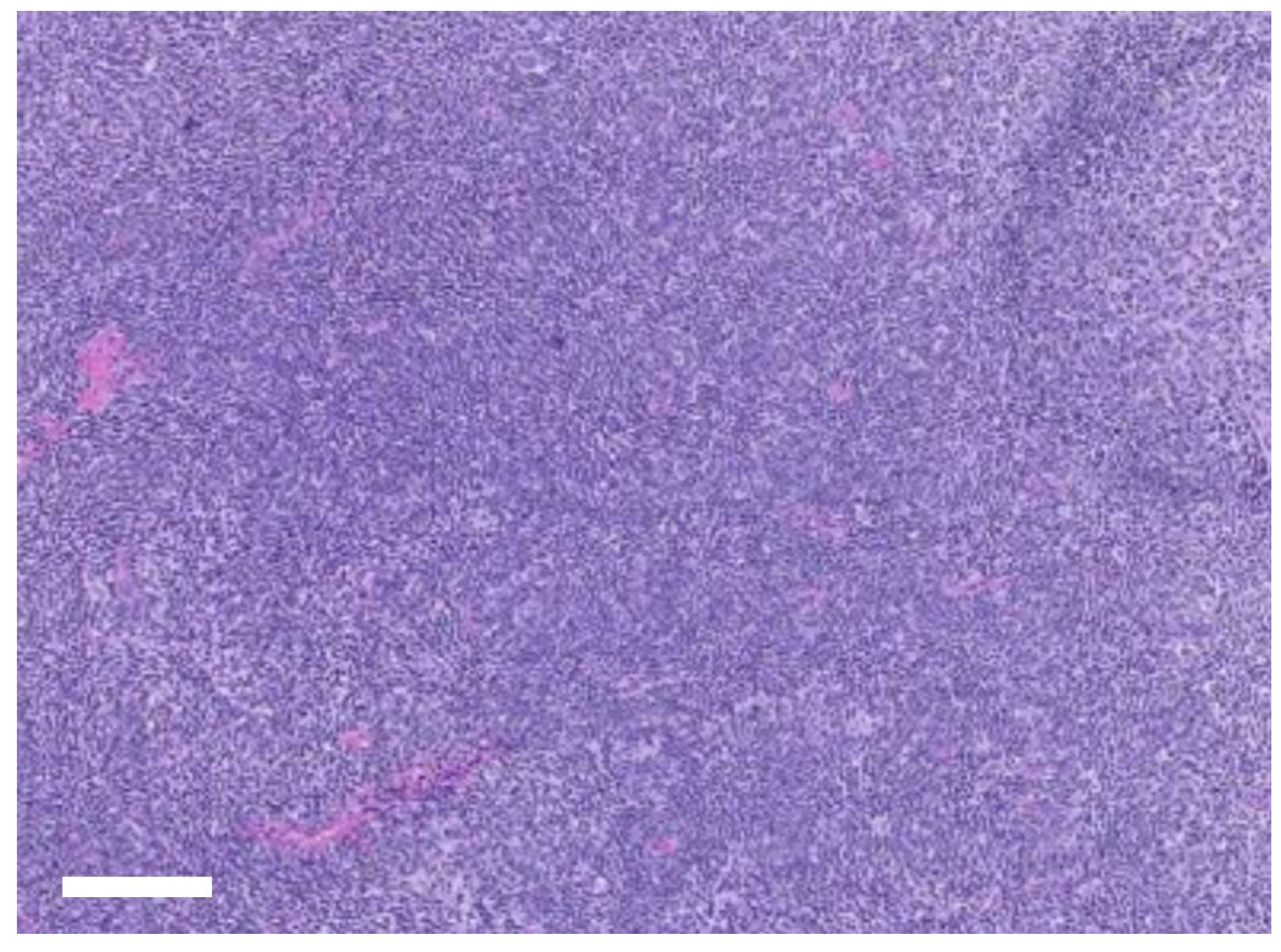 Histopathological examination of the excised right mandibular lymph node revealed diffuse lymphoid hyperplasia (