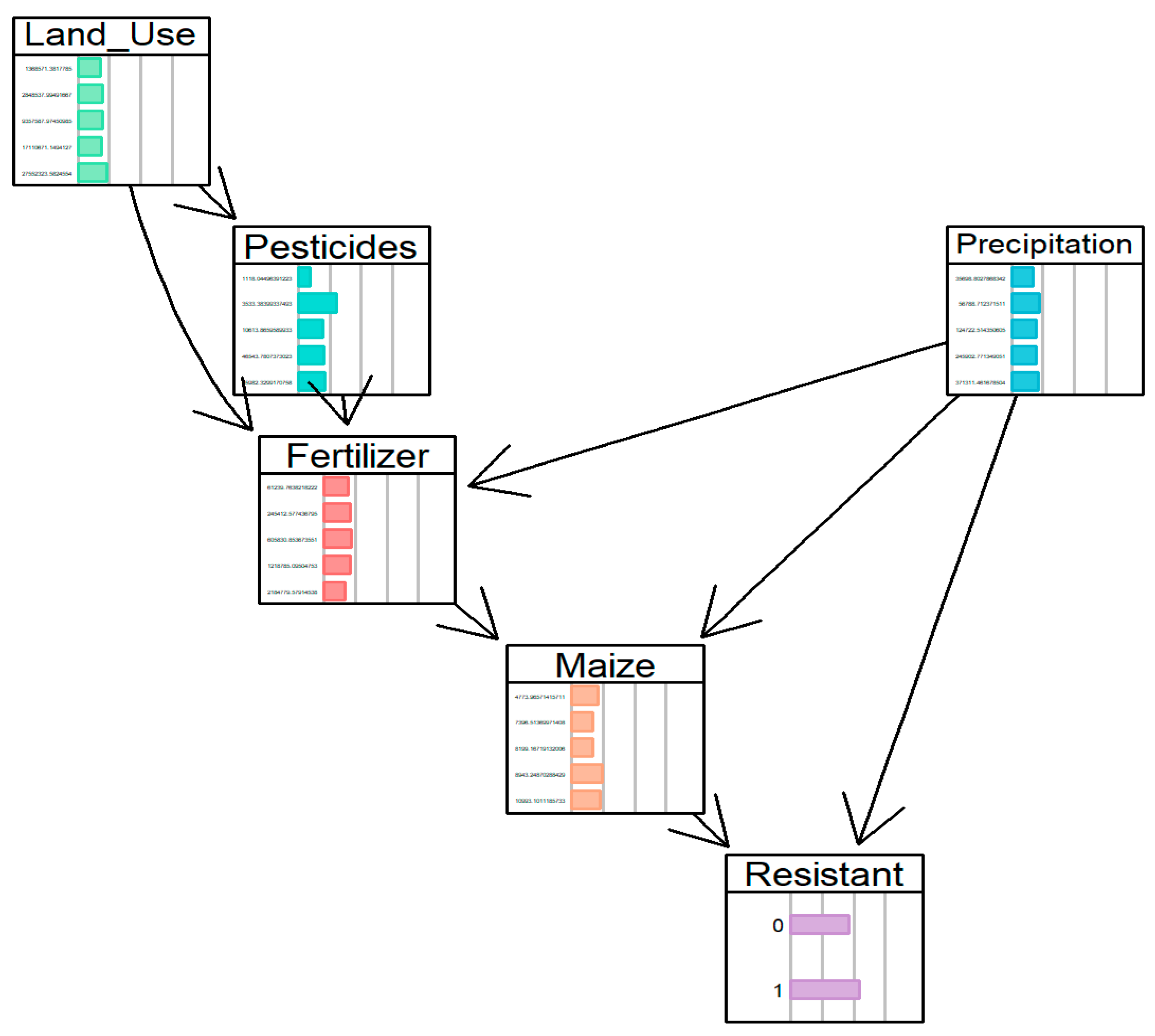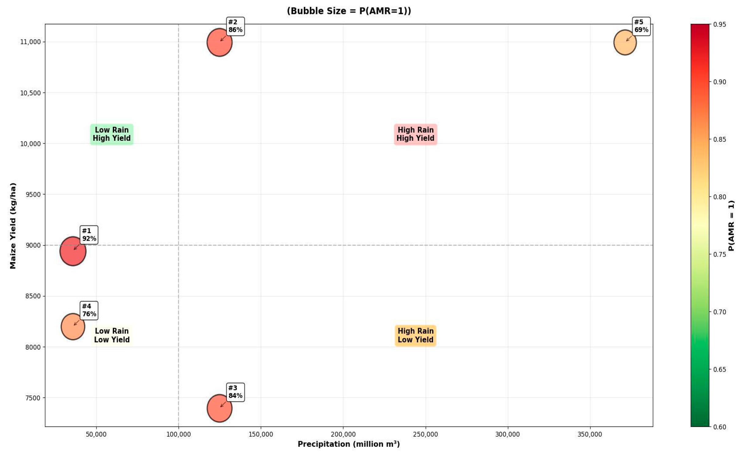 | Rank | P (Resistant = 1) | Maize Yield (kg/ha) | Precipitation (Million m3) | Interpreted AMR Pathway |