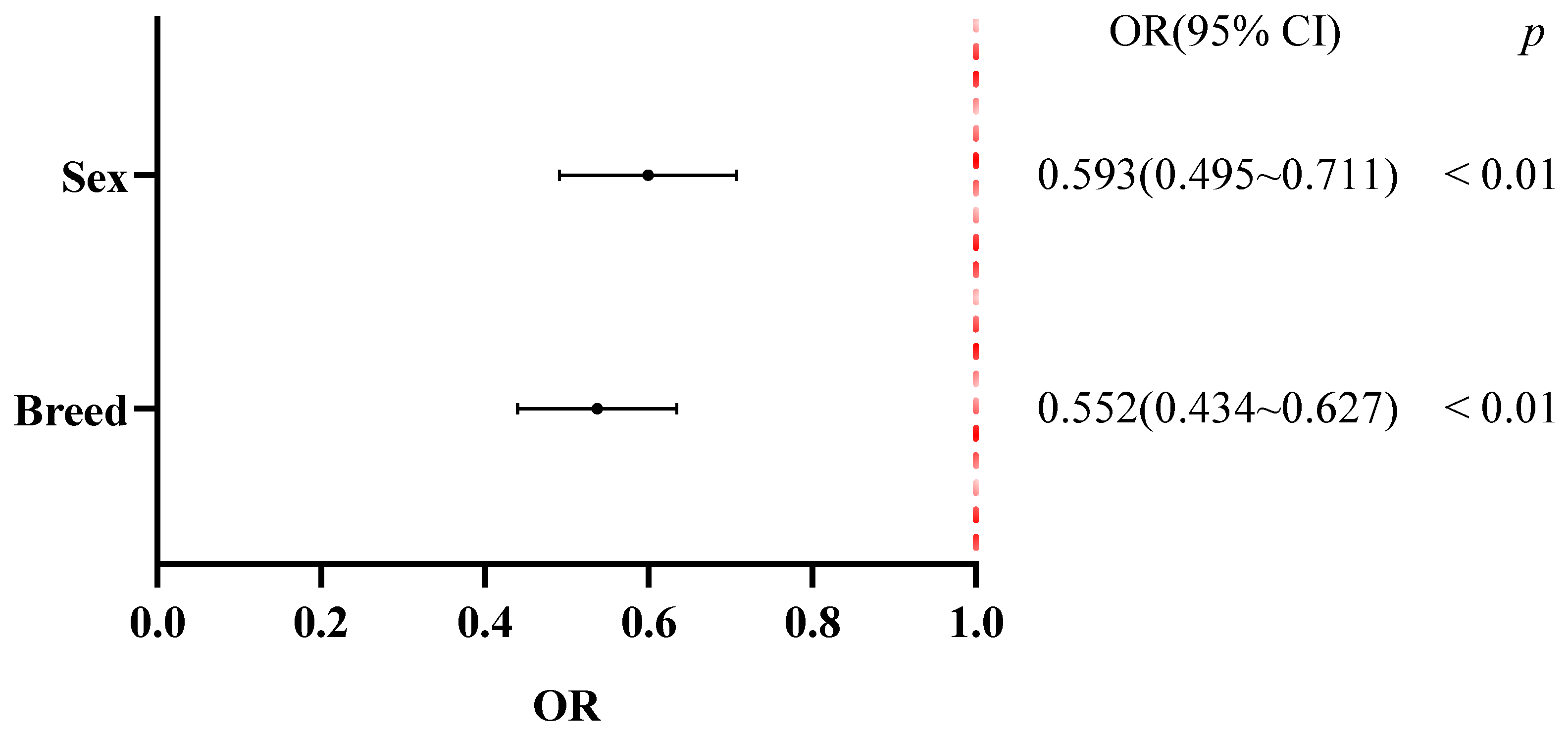 Further multivariate statistical analysis identified several non-infectious risk factors contributing to diarrhea. Seasonal differences in diarrhea incidence were significant, with summer calves showing markedly higher risk than autumn calves, likely related to temperature and humidity, parasite lifecycles, and seasonal management practices. These findings are consistent with those reported by Svensson C and Park et al. [