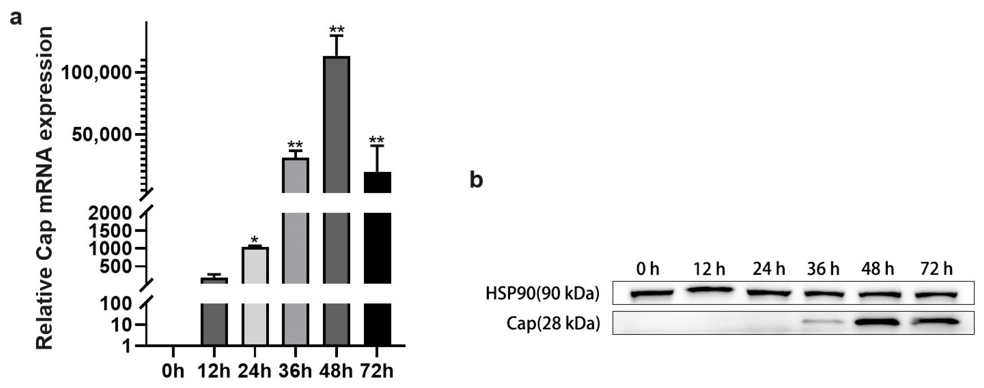 3.1. Establishment of PCV2-Infected PK15 Cell Model