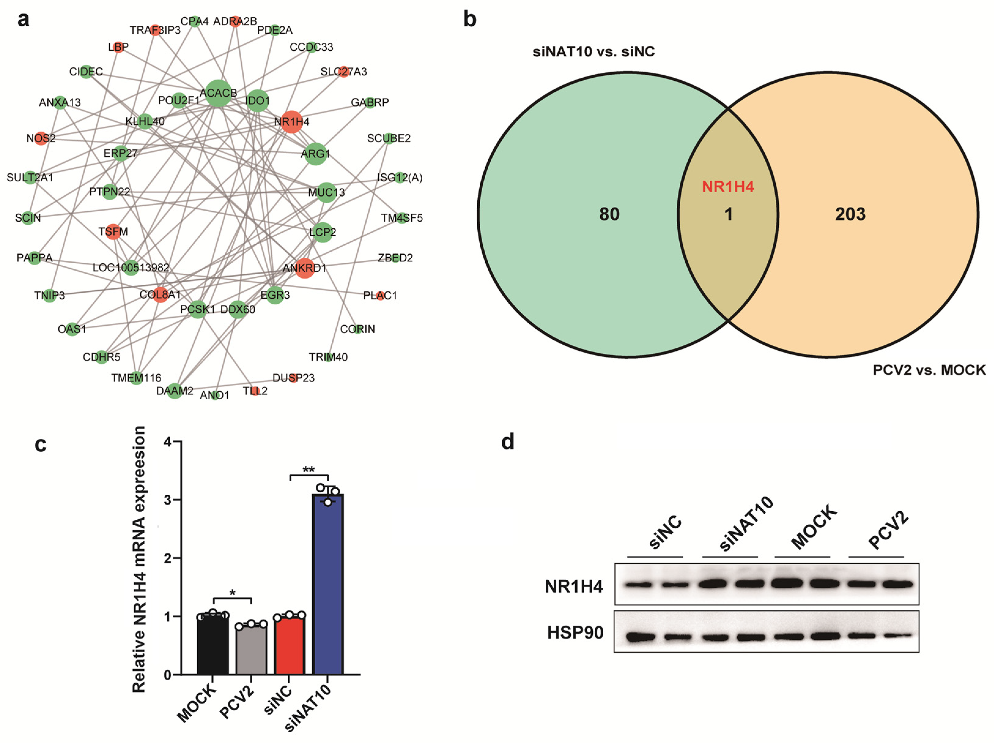 3.5. NR1H4 Probably Acts as a Potential Target of NAT10 in PCV2 Infection