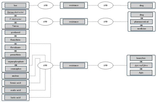 All articles identified by the search were analyzed using the same methodology described in [3]. In brief, this comprised (1) screening and selecting all articles whose abstracts met the inclusion criteria, such as treatment methods against V. destructor, including the treatment success achieved, resistance mechanisms, or adverse effects of organic acids on Apis mellifera; (2) removing duplicates; (3) reviewing the full texts of the remaining publications for essential information on the efficacy of formic acid and lactic acid against V. destructor; and (4) systematically documenting the parameters relevant for the evaluation and discussion.