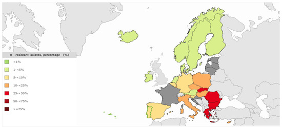 The distribution of MRD PA across various countries in the European Union. https://atlas.ecdc.europa.eu/public/index.aspx accessed on 30 January 2025.