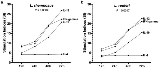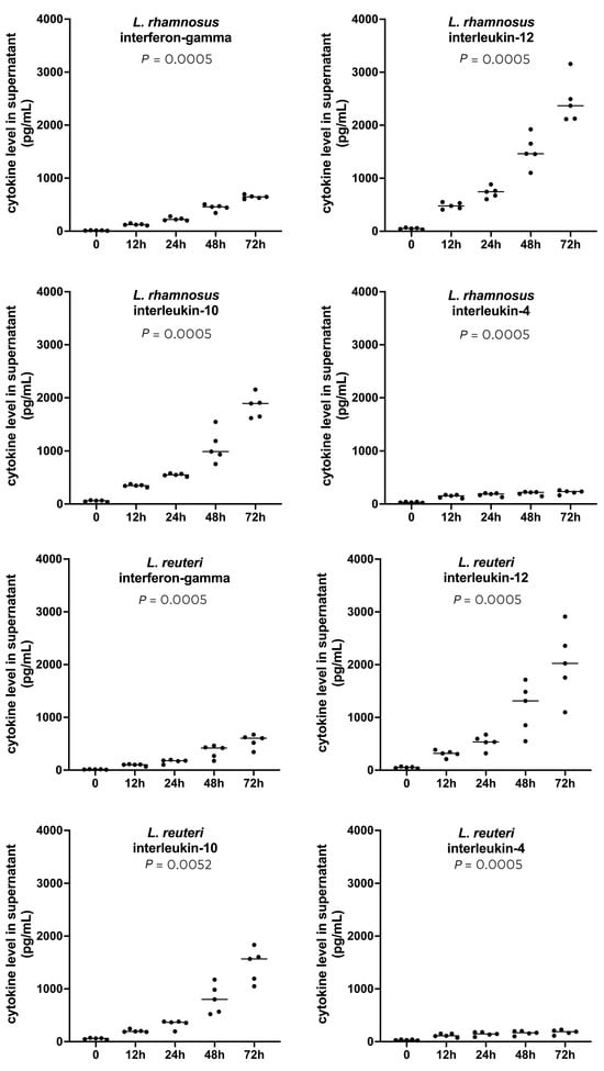 - Cross, M.L.; Ganner, A.; Teilab, D.; Fray, L.M. Patterns of Cytokine Induction by Gram-Positive and Gram-Negative Probiotic Bacteria. FEMS Immunol. Med. Microbiol. 2004, 42, 173–180. [Google Scholar] [CrossRef]