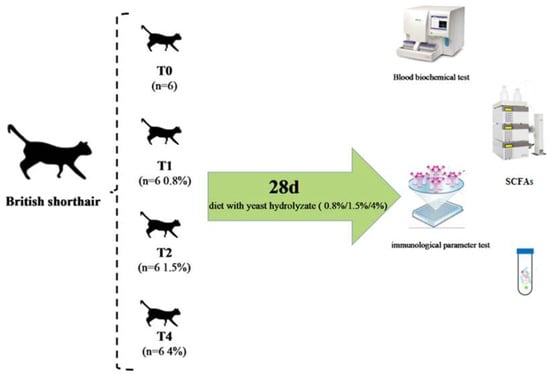 Sun, J.; Liang, S.; Gu, X.; Xu, J.; Wang, X.; Wang, Z.; Tao, H.; Wang, J.; Han, B. Effects of Dietary Supplementation with Yeast Hydrolysate on Immune Function, Fecal Short Chain Fatty Acids, and Intestinal Health in Cats. Vet. Sci. 2025, 12, 239. https://doi.org/10.3390/vetsci12030239