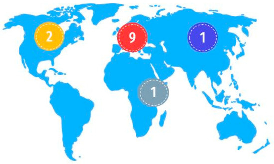 The study encompasses representation from all continents except Antarctica and Oceania, with the largest portion corresponding to Europe, represented by nine zoological parks housing 368 animals. In America, there are two parks with 150 individuals, while Africa and Asia have one park with 12 and 8 flying foxes, respectively. Figure 1 demonstrates the geographical distribution of the participants.