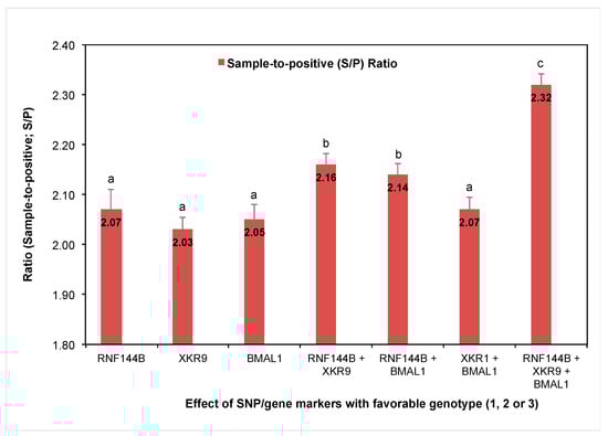 | rs707264998 | RNF144B | 1.90 ± 0.03 a | 2.36 ± 0.10 b | 2.51 ± 0.09 b | 0.0009 |