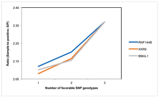 | rs81358818 | BMAL1 | 2.31 ± 0.08 a | 2.14 ± 0.06 b | 1.87 ± 0.07 c | <0.0001 |