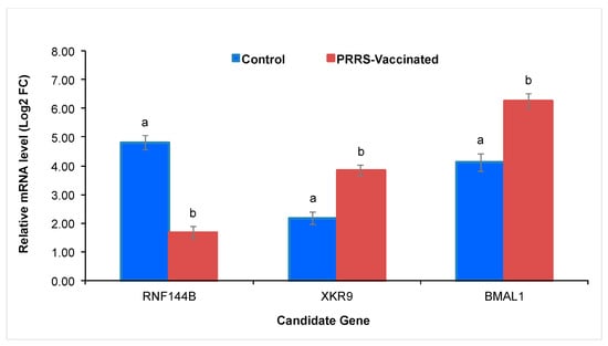 Chicago/Turabian StyleIcedo-Nuñez, Salvador, Rosa I. Luna-Ramirez, R. Mark Enns, Scott E. Speidel, Jesús Hernández, Xi Zeng, Miguel A. Sánchez-Castro, Carlos M. Aguilar-Trejo, Guillermo Luna-Nevárez, Martha C. López-González, and et al. 2025. "Validation of Polymorphisms Associated with the Immune Response After Vaccination Against Porcine Reproductive and Respiratory Syndrome Virus in Yorkshire Gilts" Veterinary Sciences 12, no. 4: 295. https://doi.org/10.3390/vetsci12040295