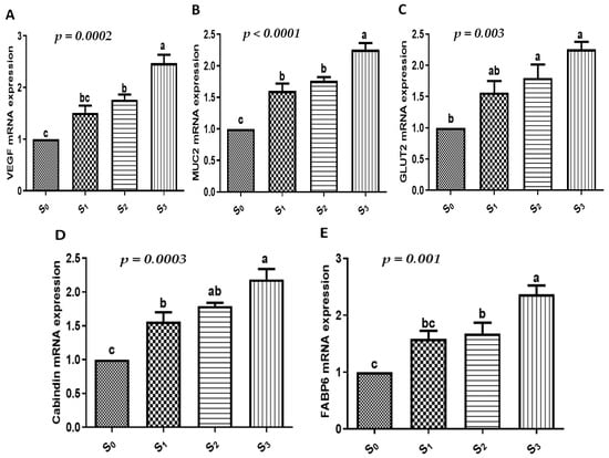 Chicago/Turabian StyleMahmoud, Rania El Sayed, Ahmed Ateya, Hossam Gadalla, Hanan M. Alharbi, Khairiah M. Alwutayd, and Eman M. Embaby. 2025. "Growth Performance, Immuno-Oxidant Status, Intestinal Health, Gene Expression, and Histomorphology of Growing Quails Fed Diets Supplemented with Essential Oils and Probiotics" Veterinary Sciences 12, no. 4: 341. https://doi.org/10.3390/vetsci12040341