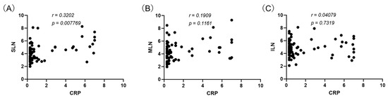 3.3. Associations Between Lymph Node Diameter and Plasma CRP in Correlation Coefficient