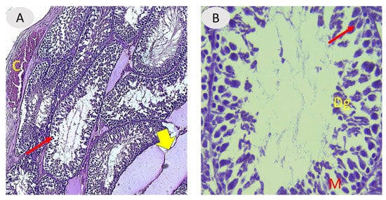 APA StyleAli, S. A., AL-Mousawi, Z. A. H., AL-Rikaby, A. A., Farouk, S. M., & Elnesr, S. S. (2025). Ameliorative Effect of Artemisia absinthium Ethanolic Extract Against Sodium Fluoride Toxicity in Rat Testes: Histological and Physiological Study. Veterinary Sciences, 12(4), 371. https://doi.org/10.3390/vetsci12040371