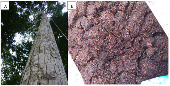 Andiroba Carapa guianensis Aublet (Meliaceae) tree (A) and the Andiroba seed residue (B) after industrialized oil extraction.