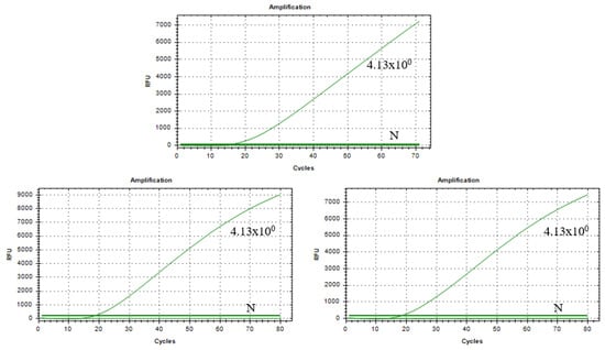 For the plasmid templates with a detection limit of 4.13 × 100 copies/µL, results from three replicate experiments consistently showed similar, specific fluorescent signal curves and positive outcomes (Figure 8). This indicates that the RAA–CRISPR/Cas13a assay has good detection stability for TGEV.