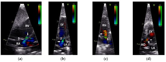 - Kirberger, R.M.; Bland-van den Berg, P.; Darazs, B. Doppler echocardiography in the normal dog: Part I Velocity findings and flow patterns. Vet. Radiol. Ultrasound 1992, 33, 370–379. [Google Scholar] [CrossRef]