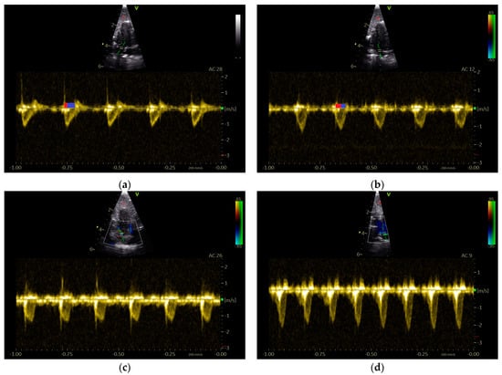 - Ginghina, C.; Muraru, D.; Vladaia, A.; Jurcut, R.; Popescu, B.A.; Calin, A.; Giusca, S. Doppler Flow Patterns in the Evaluation of Pulmonary Hypertension. Rom. J. Intern. Med. 2009, 47, 109–121. [Google Scholar] [PubMed]