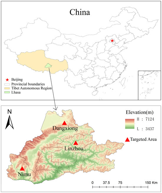 Map showing targeted areas for sample collection. Counties and locations in Lhasa, Xizang, where samples were collected in the given trial. The specific sampling locations were Linzhou, Dangxiong, and Nimu Counties. These three counties are mentioned in the map (GS(2024)0650).