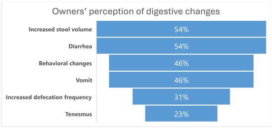 The main results related to owners’ perception of digestive changes are summarized in Figure 1.