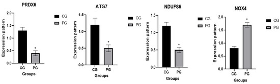 | NDUFS6 | SOD (r = 0.917 and p = 0.01) GSH (r = 0.925 and p = 0.008) TAC (r = 0.904 and p = 0.0.01) MDA (r = −0.887 and p = 0.01) |