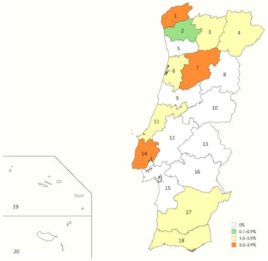 Leal-Sousa, B.; Esteves-Guimarães, J.; Matos, J.I.; Oliveira, P.; Lobo, L.; Silvestre-Ferreira, A.C.; Soares, C.S.; Carretón, E.; Morchón, R.; Fontes-Sousa, A.P.; et al. Epidemiological Mapping of Canine Angiostrongylosis in Portugal: Findings from a Nationwide Prevalence Survey. Vet. Sci. 2025, 12, 647. https://doi.org/10.3390/vetsci12070647