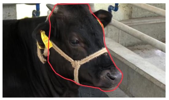An Object detection dataset consists of images and their corresponding annotations. Image annotation is the process of labeling specific regions or objects within an image to make them recognizable to machine learning models. This is typically performed to provide ground-truth data for training and validation, allowing the model to learn from accurately marked examples. Image annotation was performed by an expert using the VIA (VGG Image Annotator, Figure 3) [23]. For the head dataset, the region of interest (ROI) was defined as the area from the top of the head to the muzzle, including the lower jaw, and reaching caudally to the caudal boundary of the mandible, while excluding the neck. For the left ear dataset, the ROI included the entire pinna, including both the inner and outer surfaces, the base of the ear where it attaches to the head, and the tip of the auricle. This ensured that all visible anatomical features of the left ear were fully included in the annotation. Through this process, two object detection datasets were created: one for cattle head, consisting of 2130 images with corresponding annotations (1550 for training and validation and 580 for test), and another for cattle left ear, comprising 2260 images with annotations (1610 for training and validation and 650 for test).