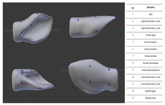 Unlike the human face, there is no standardized set of anatomical landmarks for the ear in cattle. Therefore, in this study, we defined 13 evenly distributed landmarks from the apex to the base to ensure accurate 3D pose estimation (Figure 6).