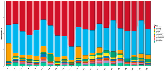 At the phylum level, the relative abundance of Planctomycetota was significantly higher in the nervous group (p < 0.05; Table 3). There was no significant difference in the relative abundance of Planctomycetota between the tyrosine treatment groups. There were no significant differences seen in the relative abundance of Bacteroidota, Bacillota A, Bacillota C, Chloroflexota, Pseudomonadota, and Verrucomicrobiota between both the temperament and treatment groups (p > 0.05).